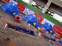 From a 300ft x 150ft empty space, we transformed it into a Kids wonderland in 2 days. Scaffolding, lorries & construction. 66 huge banners to be hung around the arena & thousands of stickers. We had an 15ft Pool to fill up w Guar gum at Knee level & it took abt 7-8 hrs to make.. we had 10 pails, 8 assistants stirring continuously..it was Crazy... We then added red colouring for the BreeZe effect.